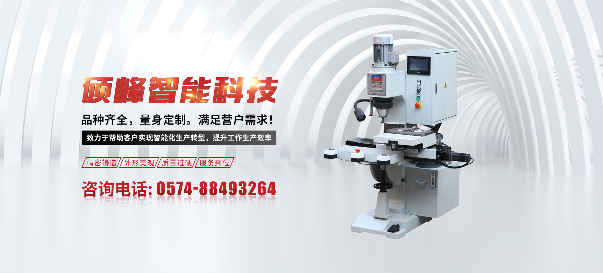 寧波市碩峰智能科技有限公司成立于2018年,坐落于寧波市鄞州區云龍工業區。公司主要從事于鉚釘機自動化設備及周邊設備的研發、生產、銷售與服務。公司擁有數控加工中心,數控龍門加工中心,數控車床加工中心,線切割,搖臂鉆,磨床,剪板機等各種大型加工設備,確保一體化生產,嚴格把控質量關,憑借公司的實力、誠信以及產品質量獲得了業界的普遍認可。